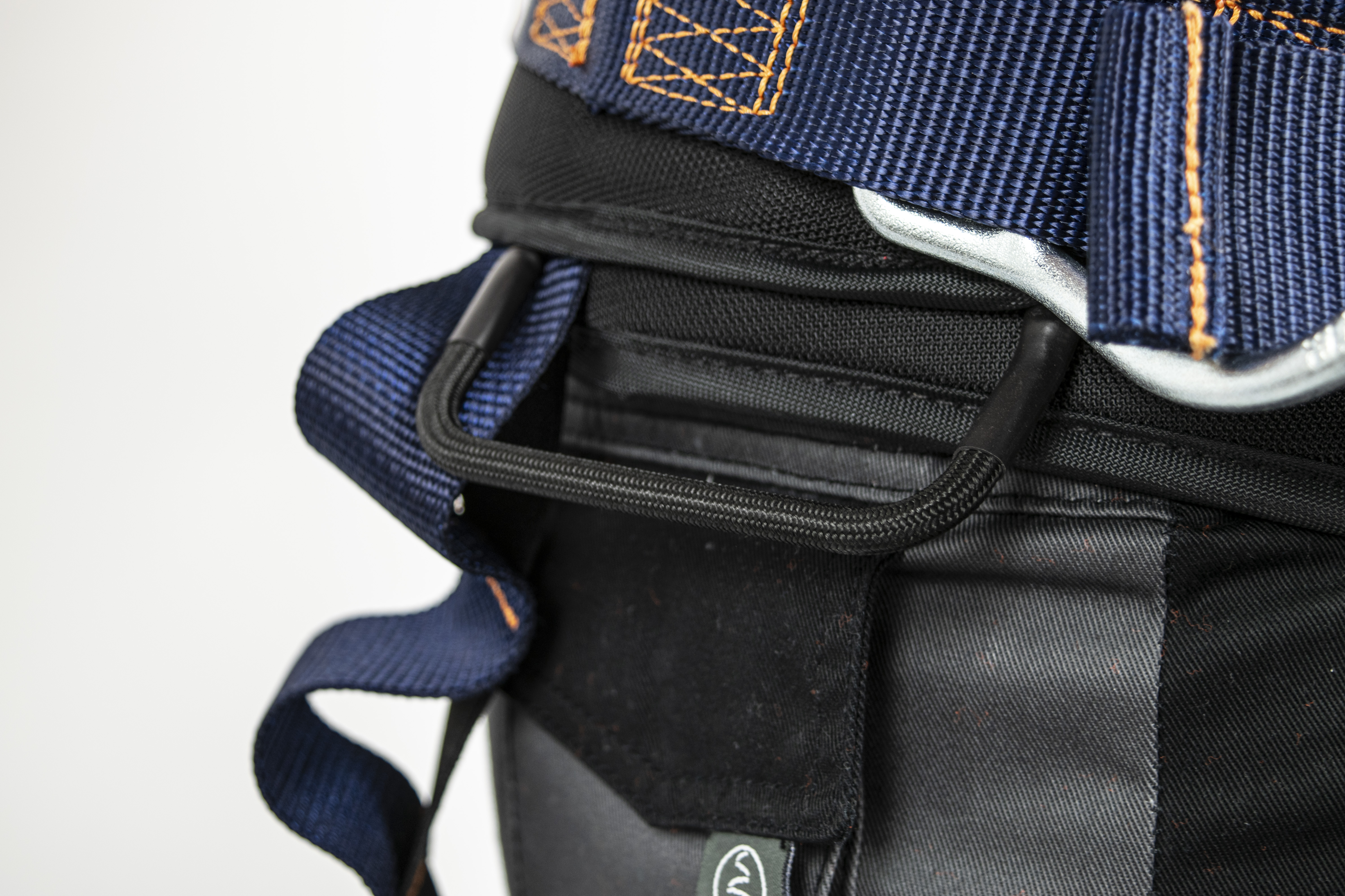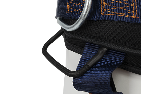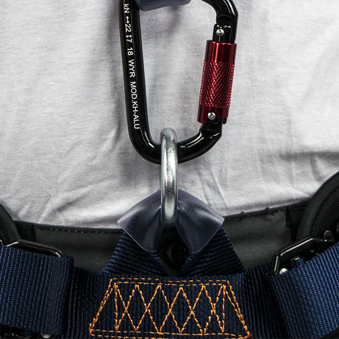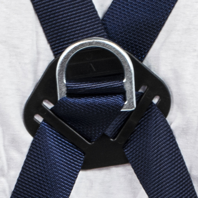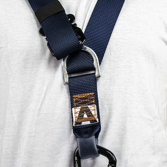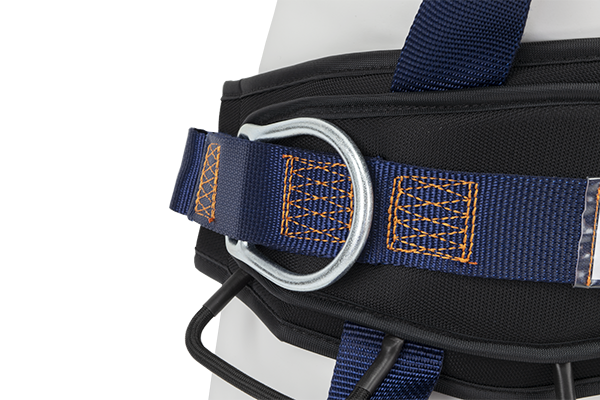 • Deux points d’ancrage sternal et dorsale formés par un D métallique, un anneau ventral pour l’accès sur corde ainsi que deux boucles métalliques latérales rabattables de maintien pour les situations de travail qui requièrent le positionnement ;