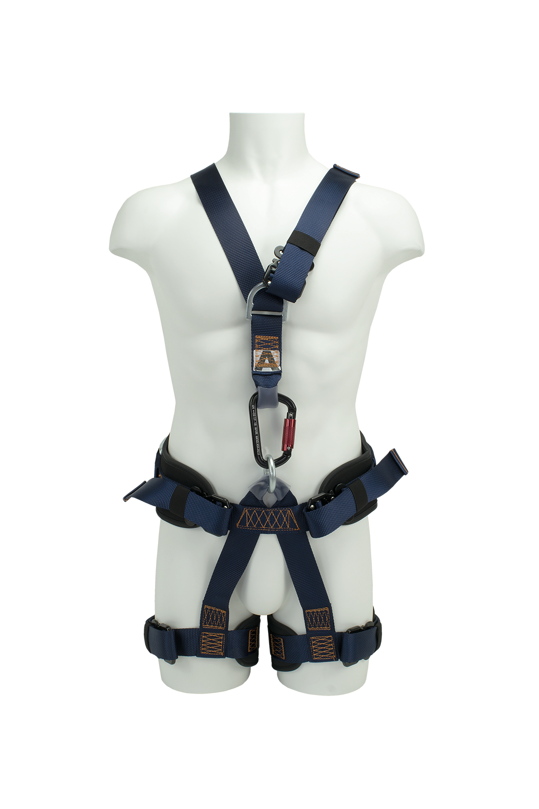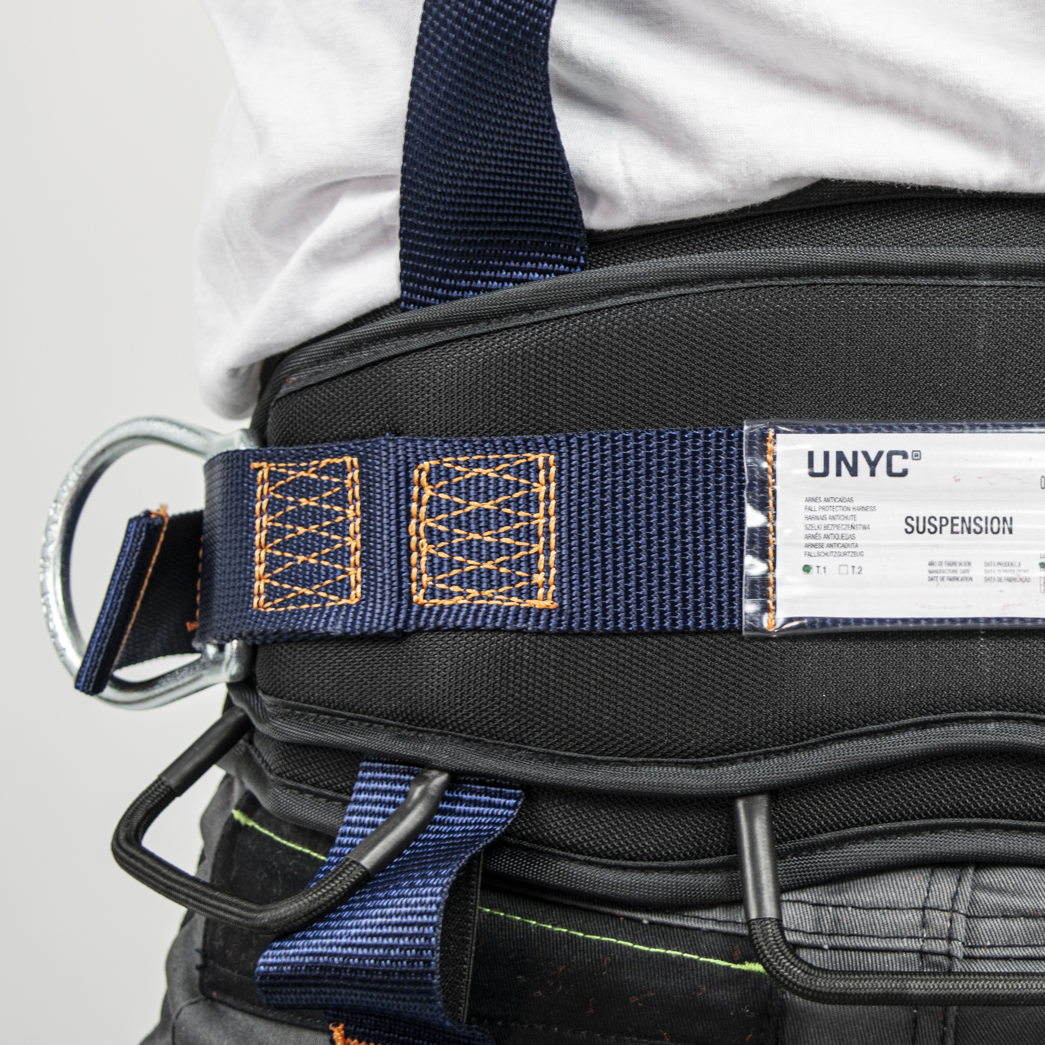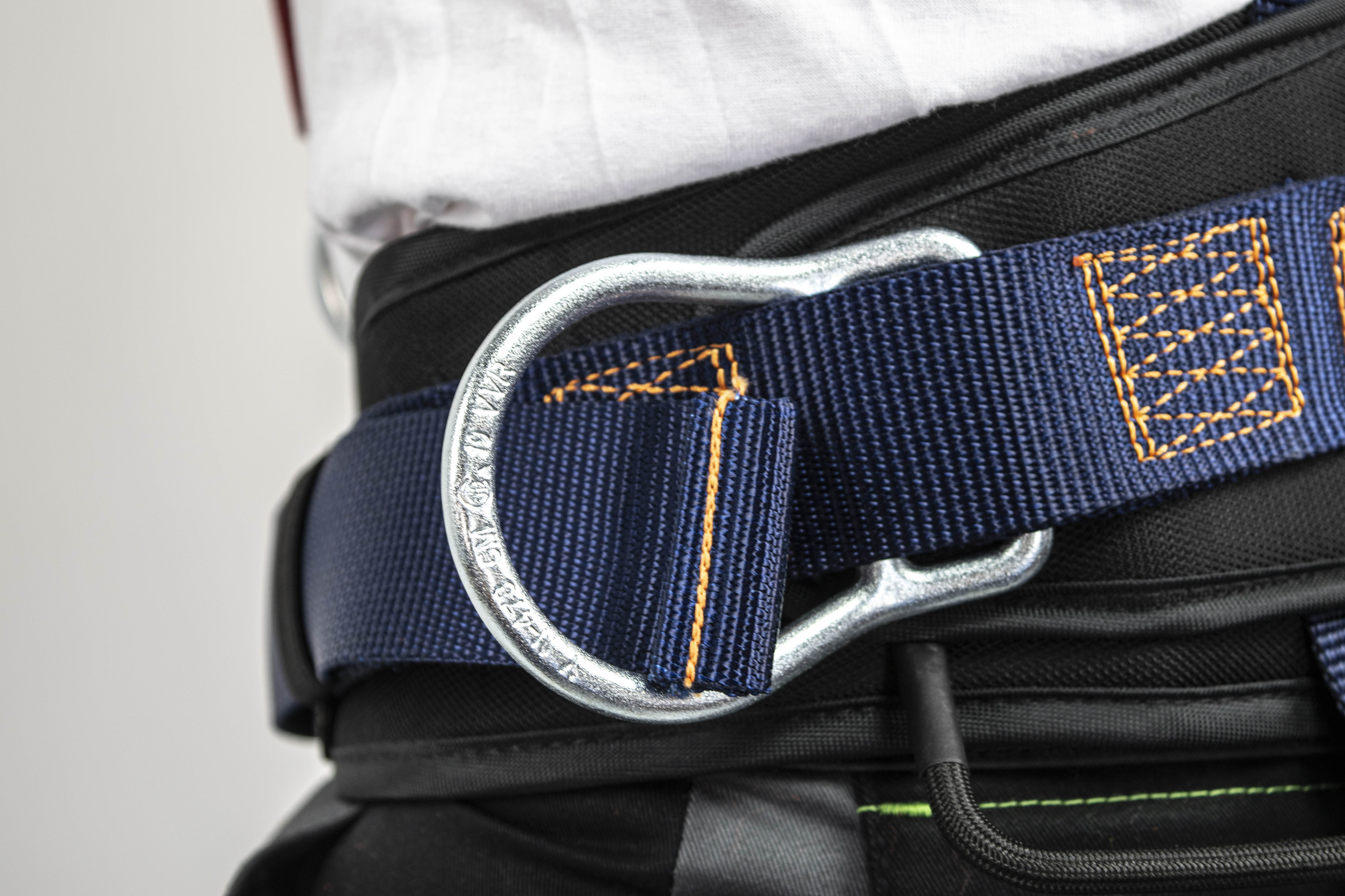 • Deux points d’ancrage sternal et dorsale formés par un D métallique, un anneau ventral pour l’accès sur corde ainsi que deux boucles métalliques latérales rabattables de maintien pour les situations de travail qui requièrent le positionnement ;