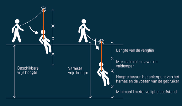 De vrije hoogte is de nodige afstand tussen het ankerpunt en het grondoppervlak. Deze hangt af van de positie van het ankerpunt en de gekozen valbeveiliging. De beschikbare vrije hoogte is de afstand tussen de structuur waarop de gebruiker werkt en het dichtstbijzijnde obstakel. De vereiste vrije hoogte is de minimale afstand opdat een gebruiker kan vallen zonder de grond of het dichtstbijzijnde obstakel te raken.